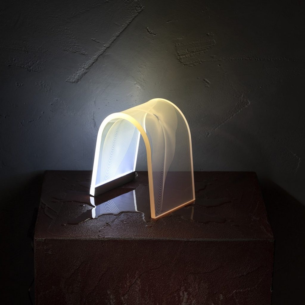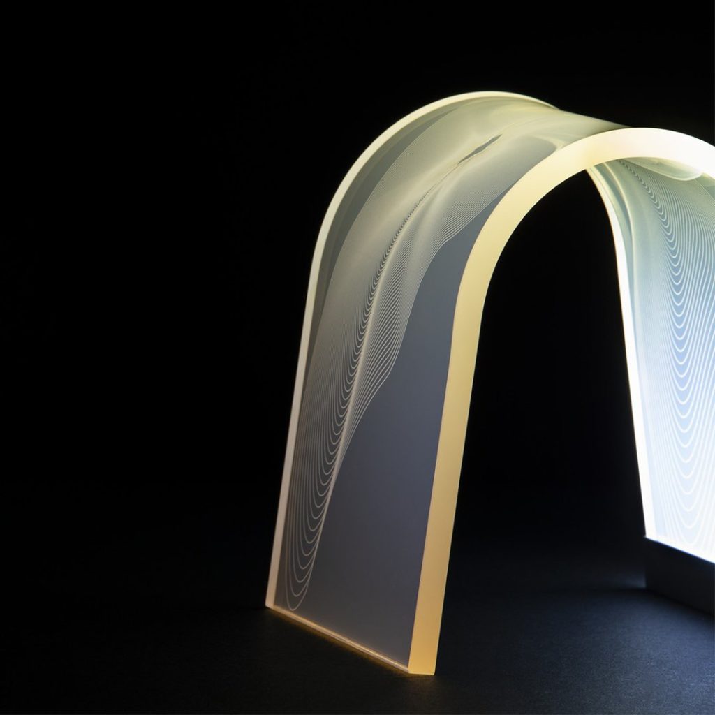 La lampe série “Limited” en cristal acrylique avec décor gravé au laser dispose d’une bande LED à la base qui illumine le corps de la lampe et ses gravures, créant un effet de diffusion spectaculaire.