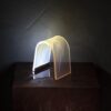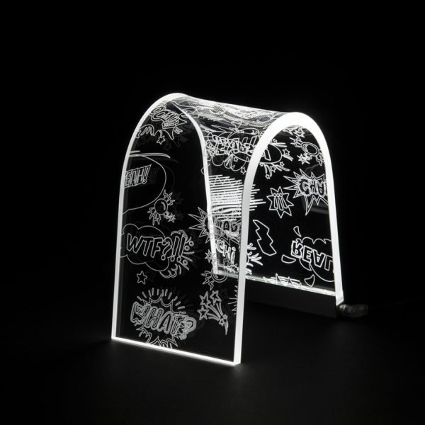 ARC POP Petite lampe en cristal acrylique transparent avec décor gravé.