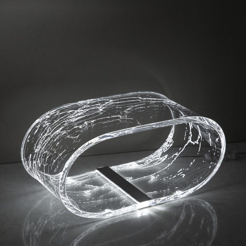 Lampe Future “Marbre” Petite lampe en cristal acrylique transparent avec décor gravé au laser.