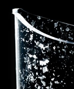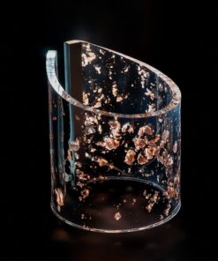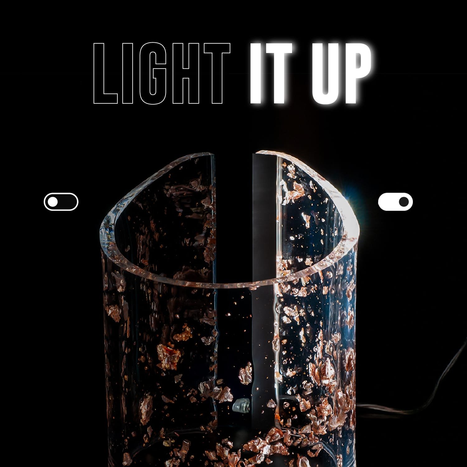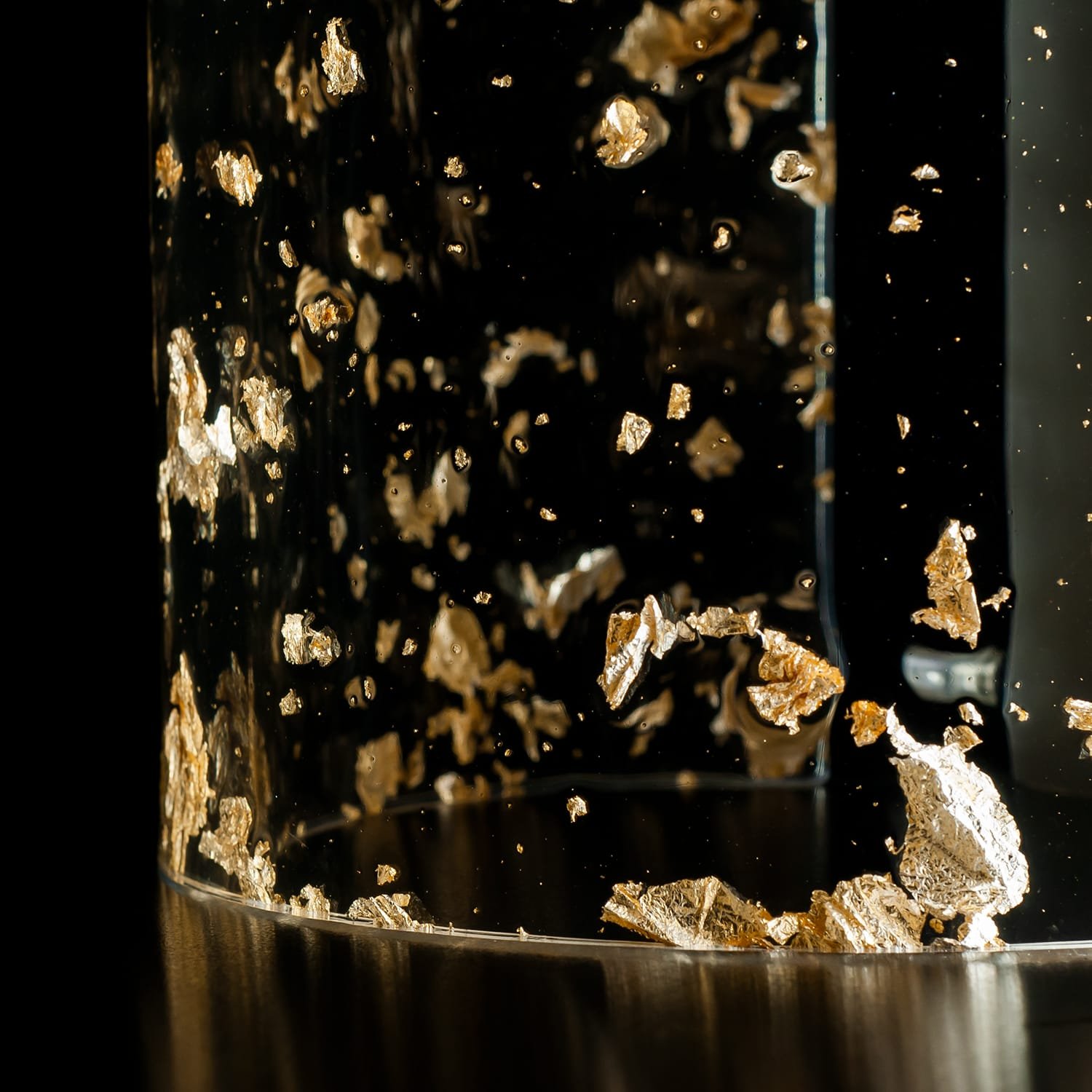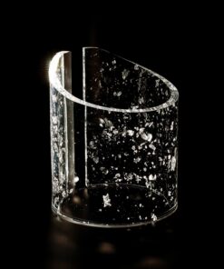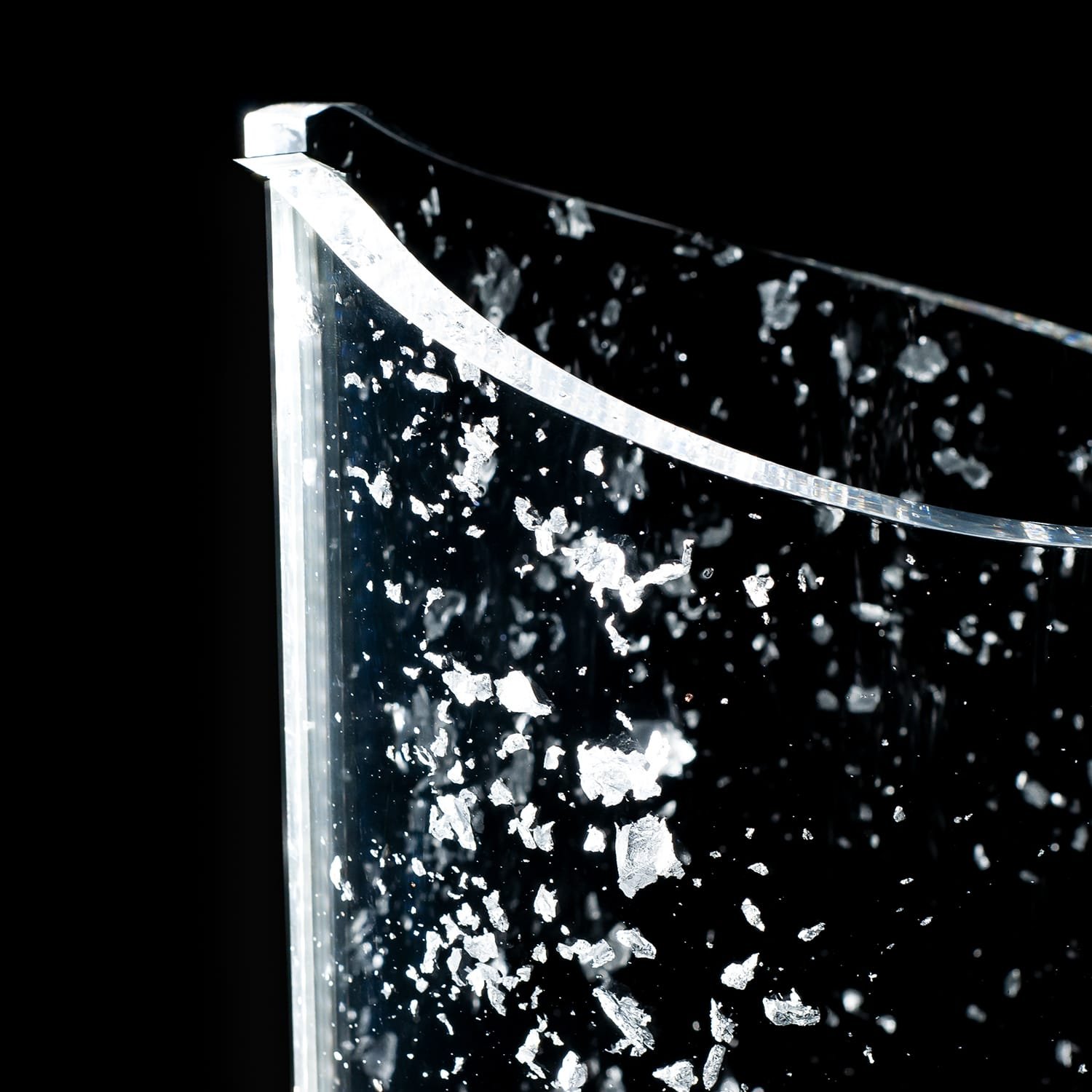 Wave est une lampe de table design, fabriquée à partir d’une seule feuille de cristal acrylique pliée à la main, avec des feuilles incrustées de matériaux précieux.