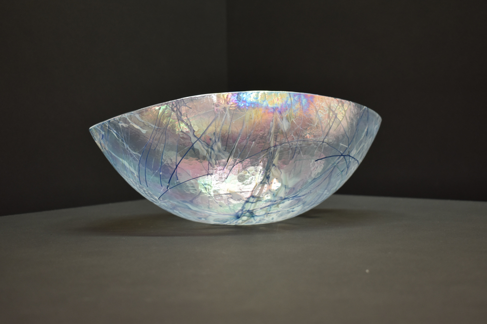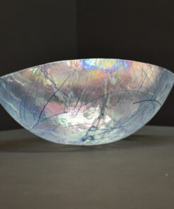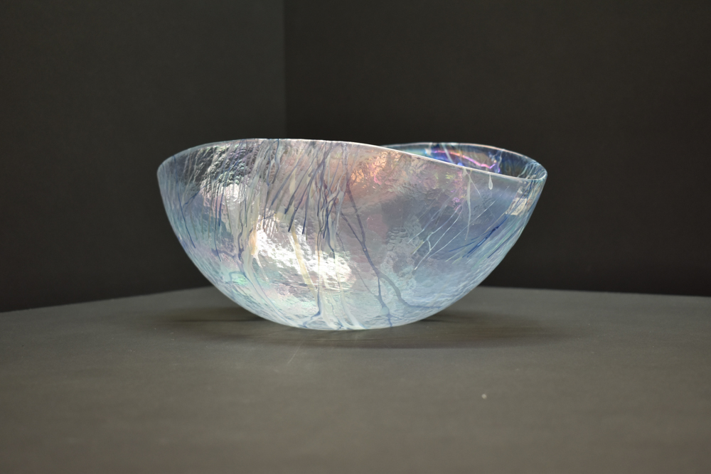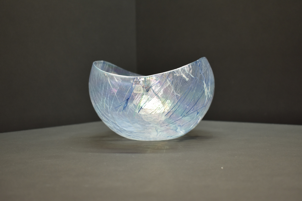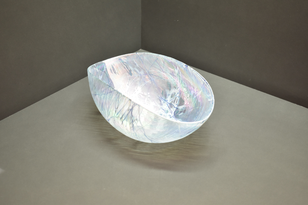Bol allongé transparent en verre de Murano produit dans la verrerie Yalos Ferro sur l’île de Murano à Venise.