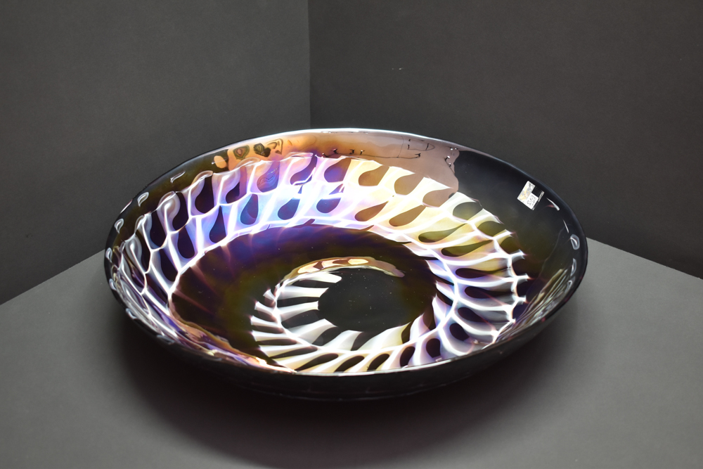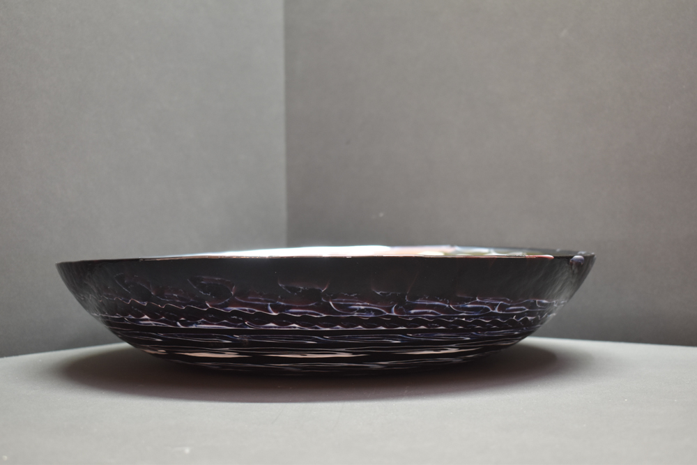 Coupe plate noire en verre de Murano produit dans la verrerie Yalos Ferro sur l’île de Murano à Venise.