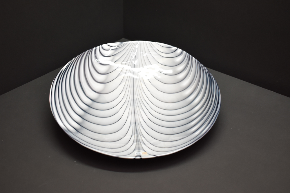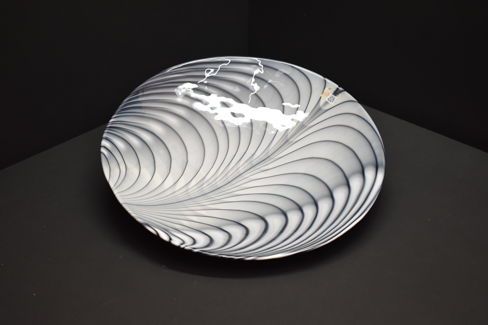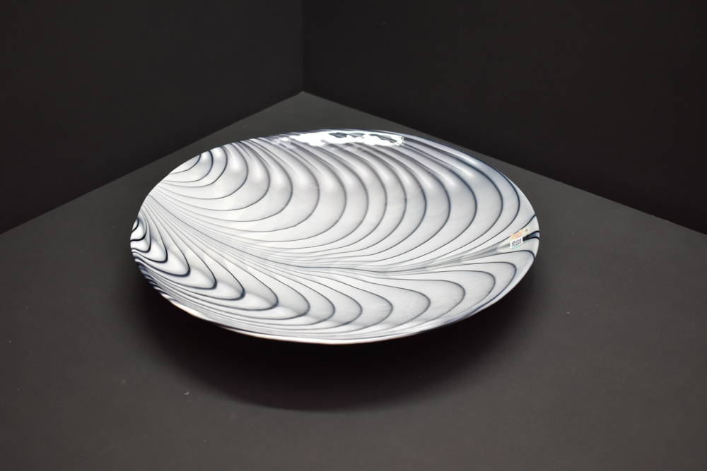 Plat paon en verre de Murano produit dans la verrerie Yalos Ferro sur l’île de Murano à Venise.
