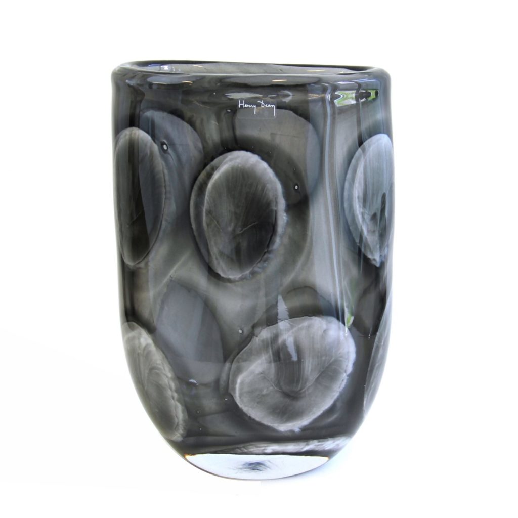 Vase oblong de la collection et du verrier Henry Dean, en verre travaillé rappelant l’aspect d’une méduse.